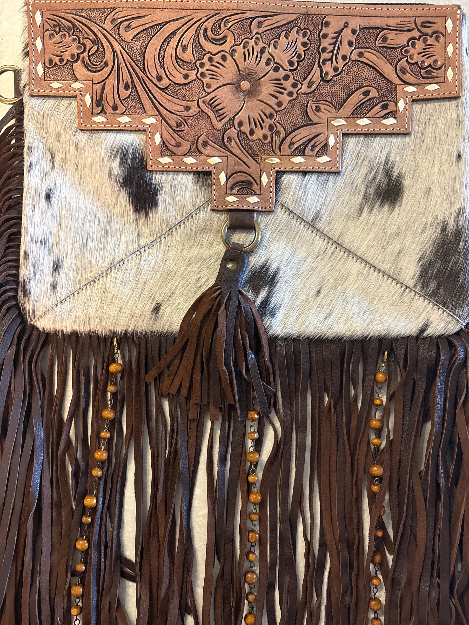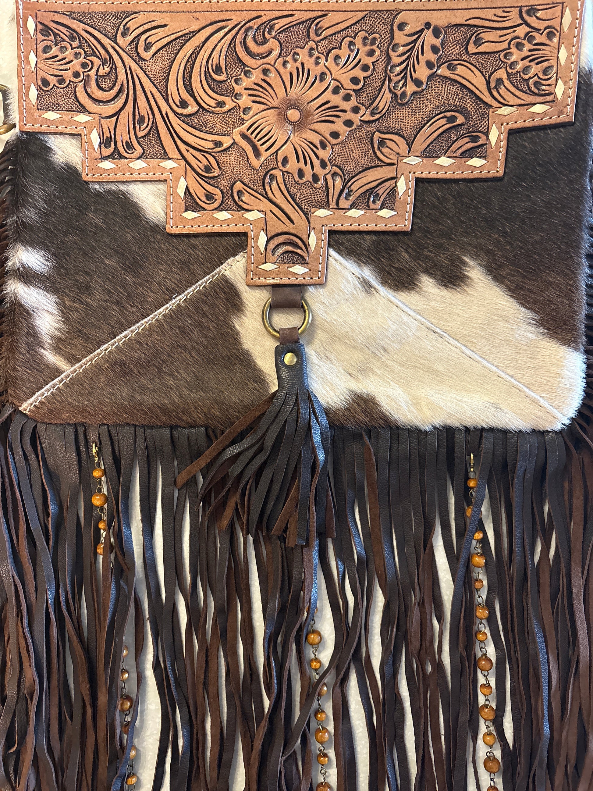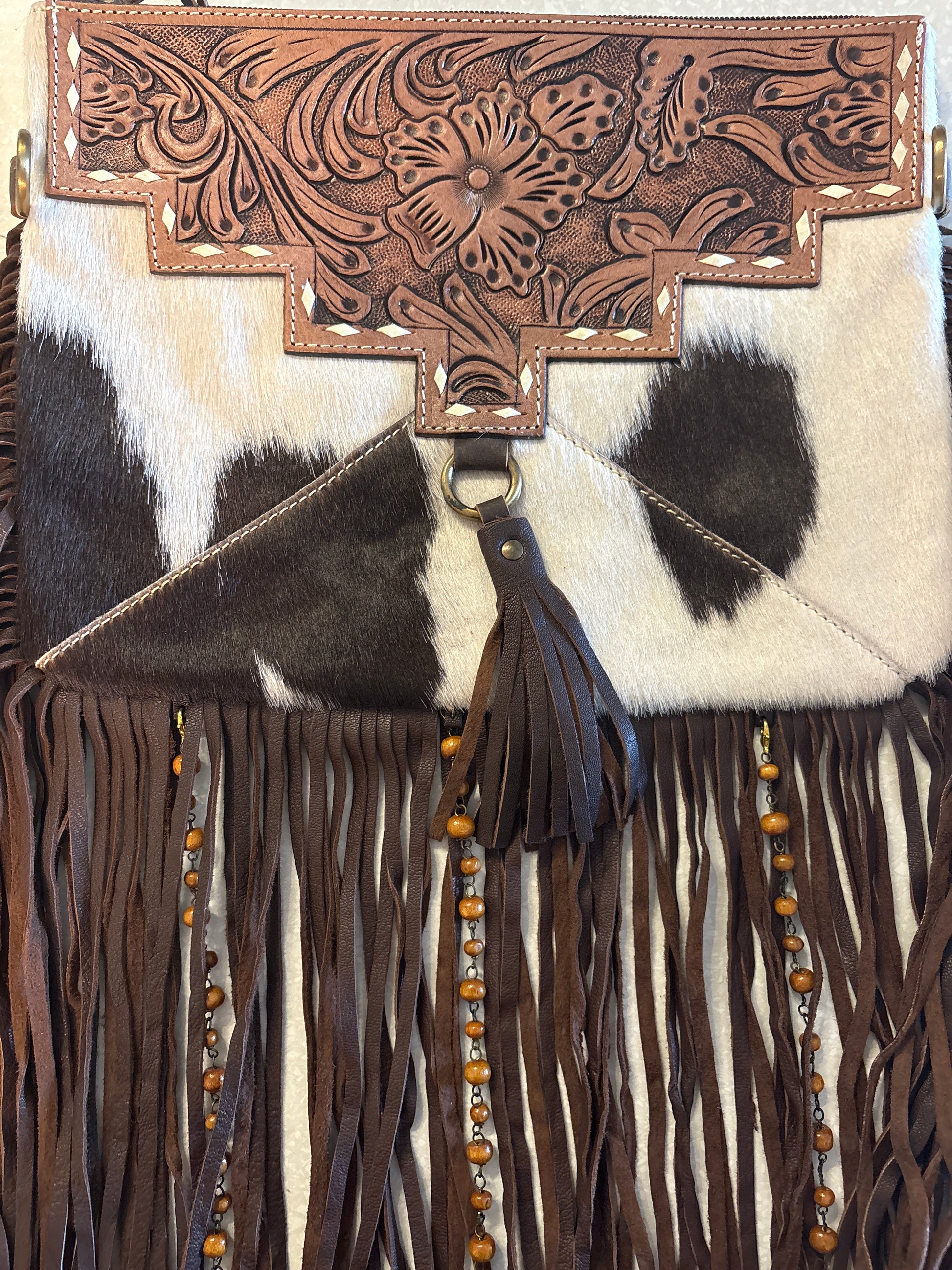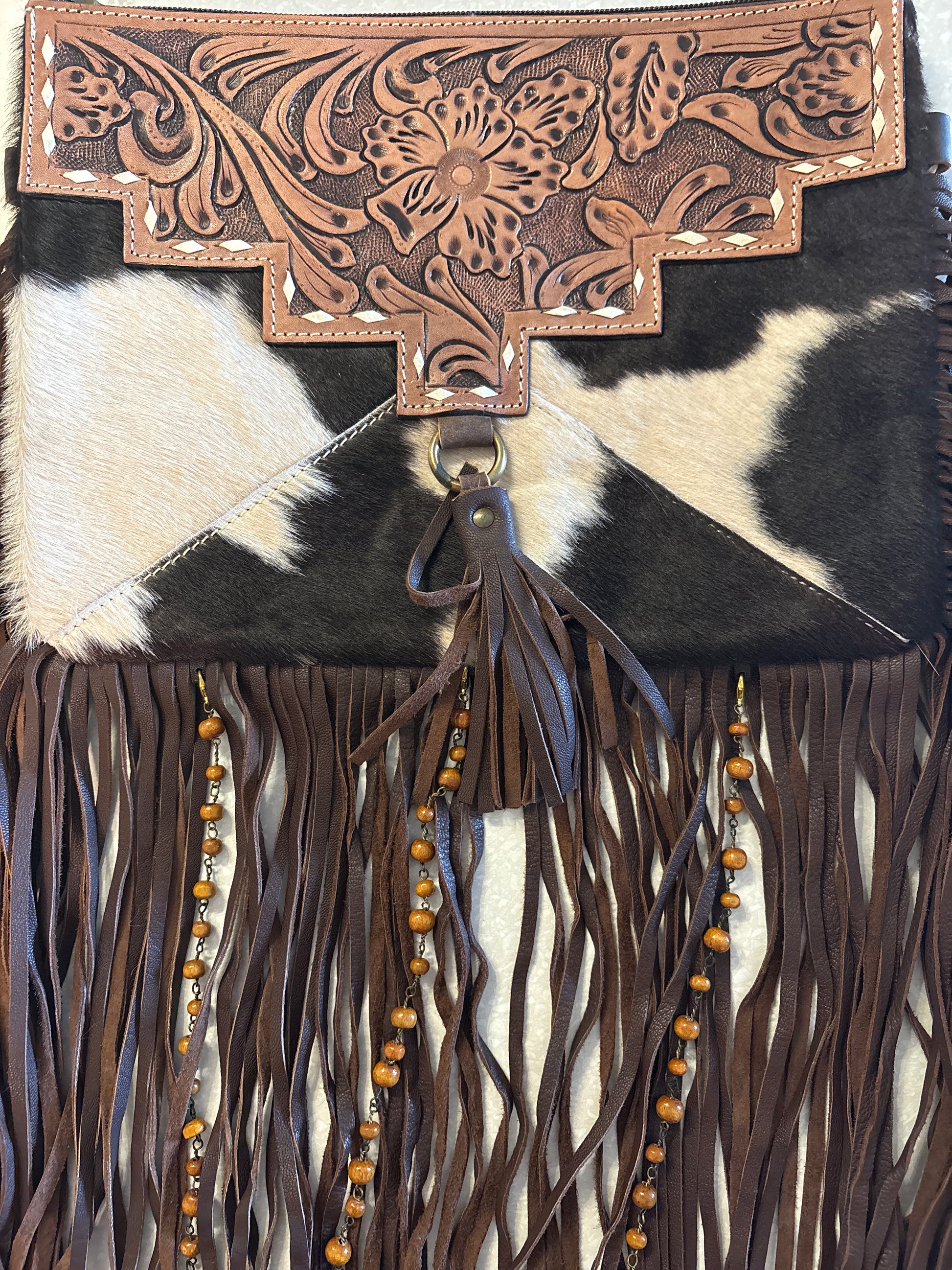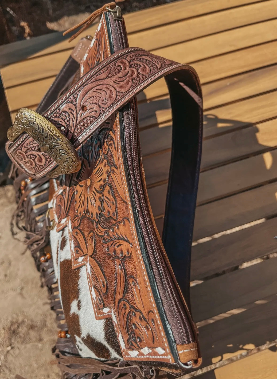 She designed this purse to be used for every moment in life! Whether you are in your everyday outfit, or booking your concert tickets to see your favorite artist, you can be sure that this purse will bring your aesthetic together beautifully. This purse boasts a tooled adjustable and removable strap, and an interior zipper pocket while the purse closes via zipper at the top. Please note every Purse will be one of a kind as each purses made with new unique cowhide pieces.