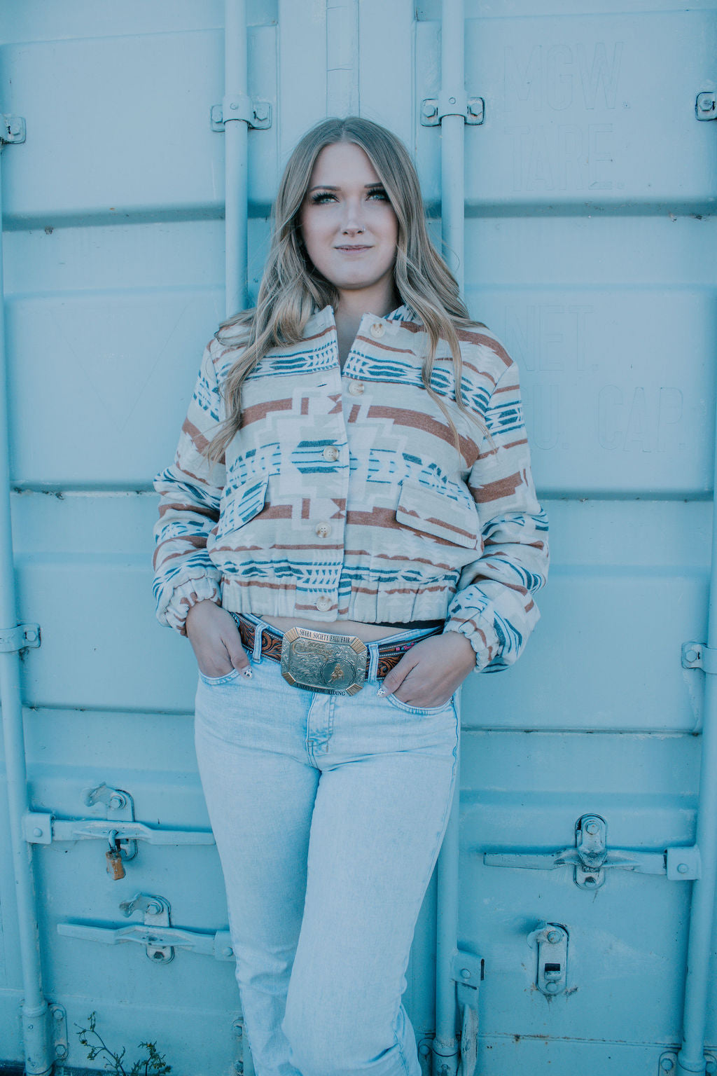 Blue B Aztec bomber Jacket
