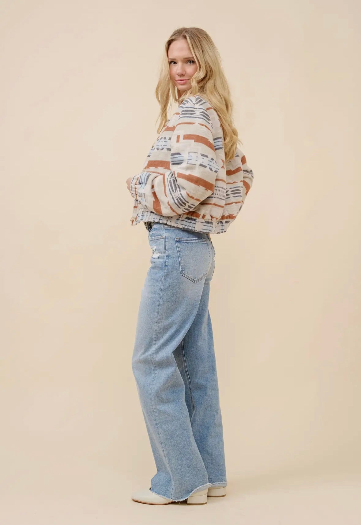 Jacquard Aztec Snap Up Bomber Jacket