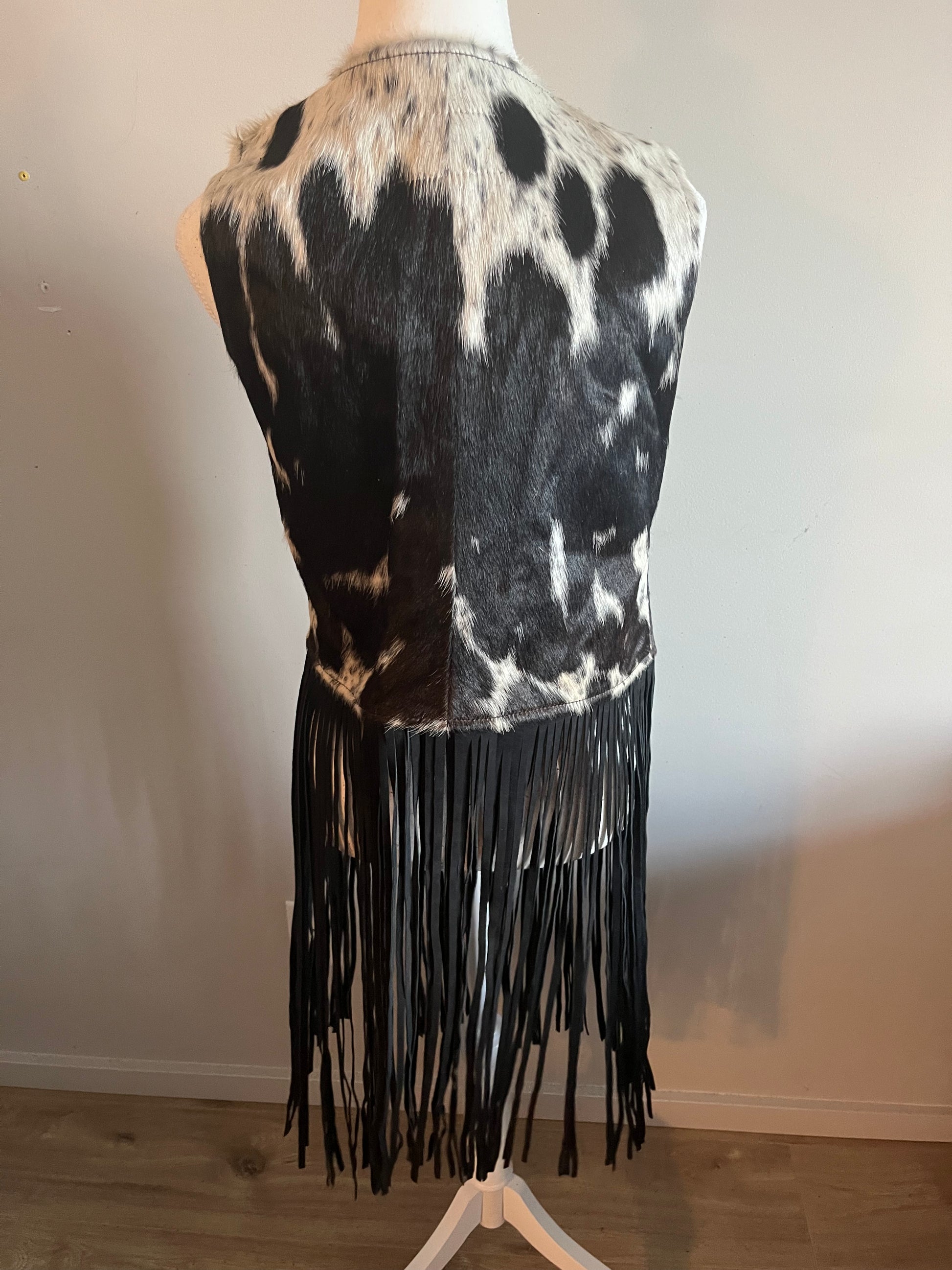 Spice up any outfit with this genuine cowhide vest that features a straight hemline with fringe. Perfect for concerts or rodeos, year-round.