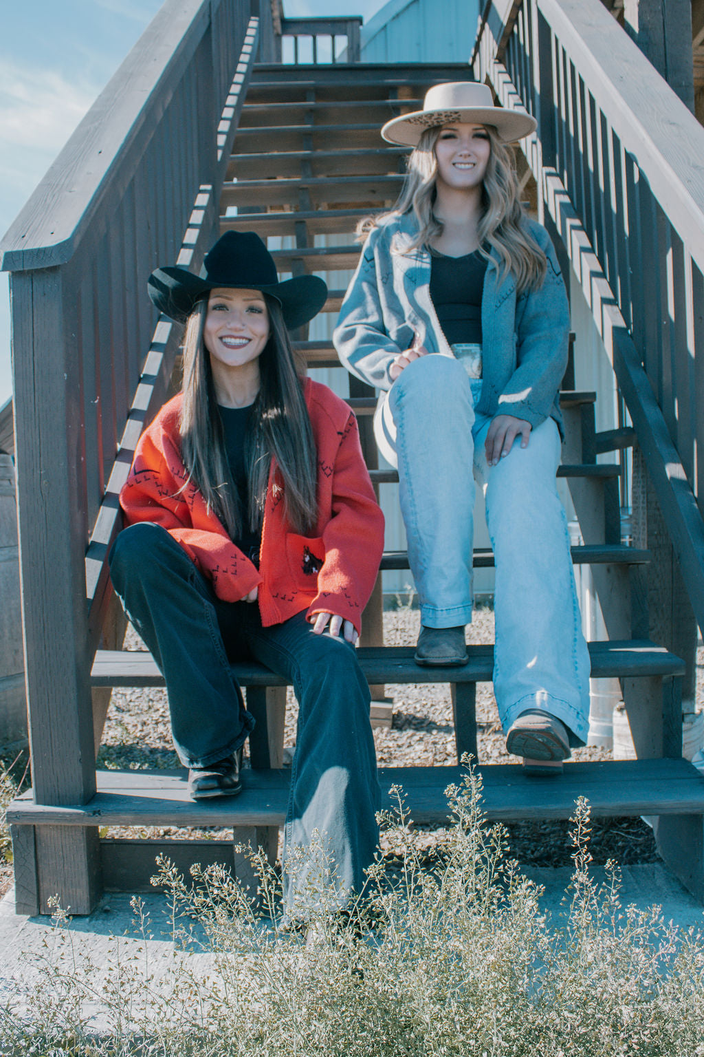 Wrap yourself in cozy western flair with this cardigan. Featuring an open-front design and relaxed fit, this statement knit is decorated with black geometric patterns and playful horse motifs on the front pockets. The soft, chunky texture adds warmth and comfort, while the vibrant red hue ensures you’ll stand out in style. Perfect for layering over casual outfits, this cardigan brings a touch of rustic charm and personality to any look.