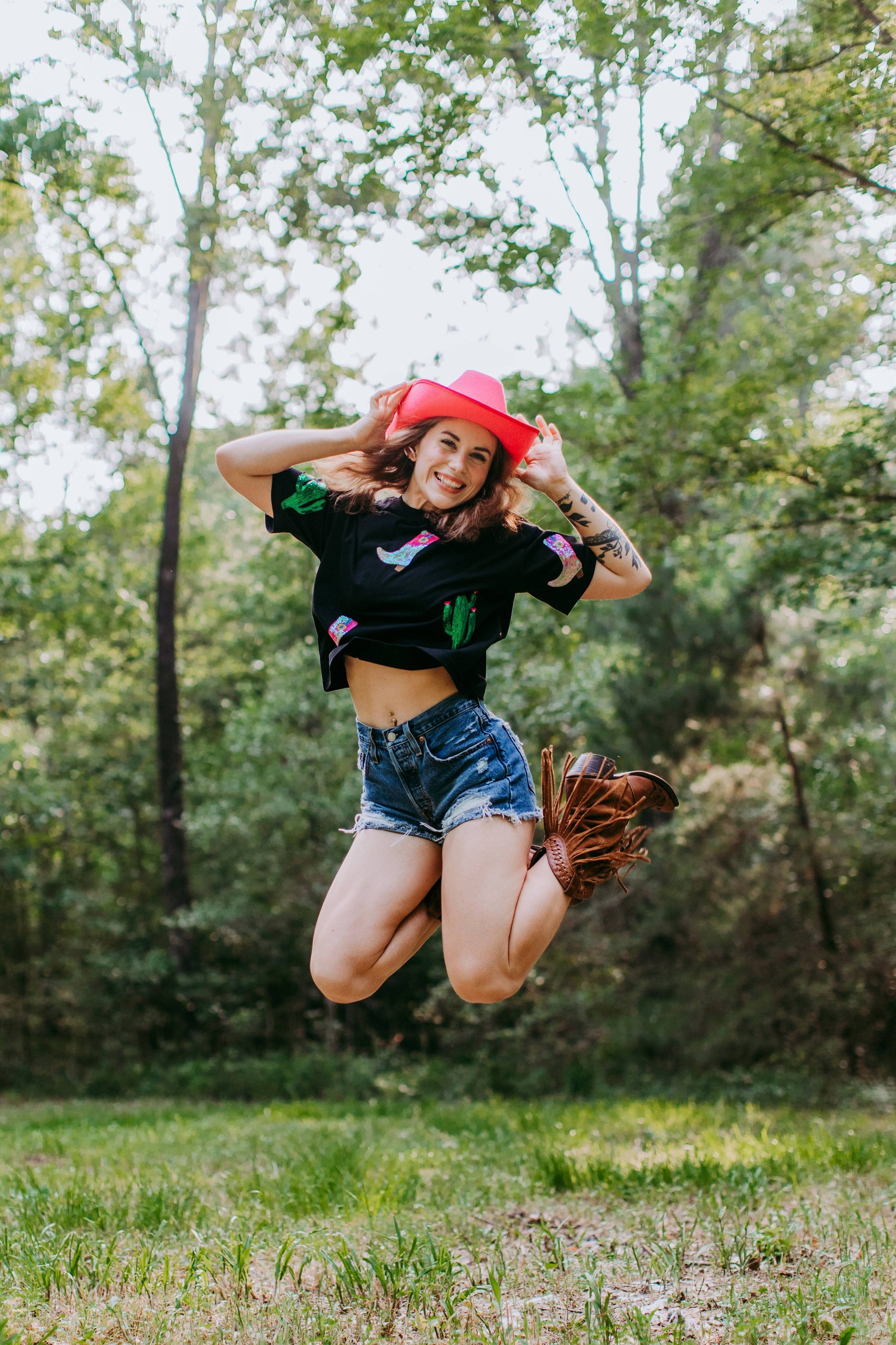 This screen-printed women's tee embodies the spirit of the Texas-based lifestyle. Its cropped design paired with a unique cactus and boots print is perfect for those who love to infuse a bit of western charm into their everyday wardrobe.