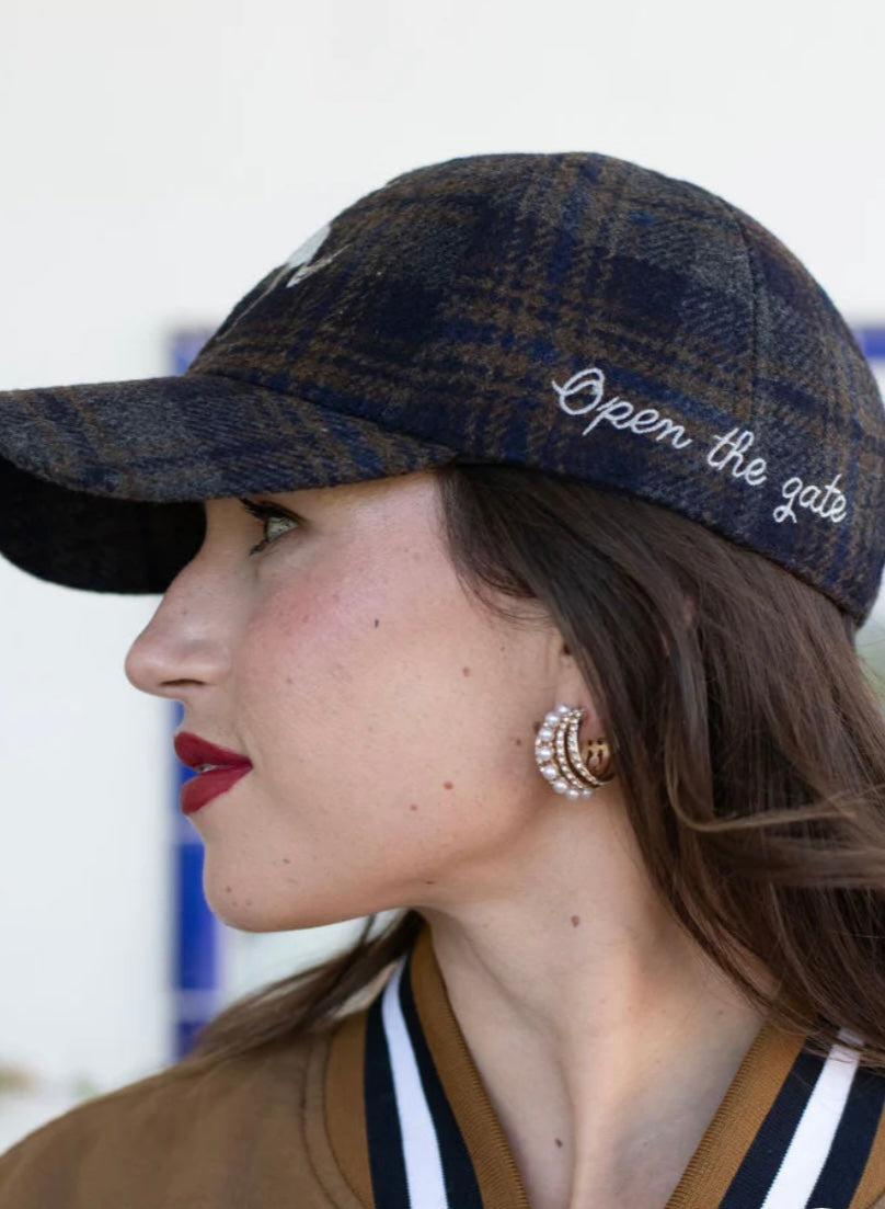 The Open the Gate Hat is a call to courage and grit, inspired by the thrill of that first moment out of the chute. With a bold plaid pattern, a bronc rider front and center, and “open the gate” stitched on the side, it’s made for those who chase the ride—heart first.