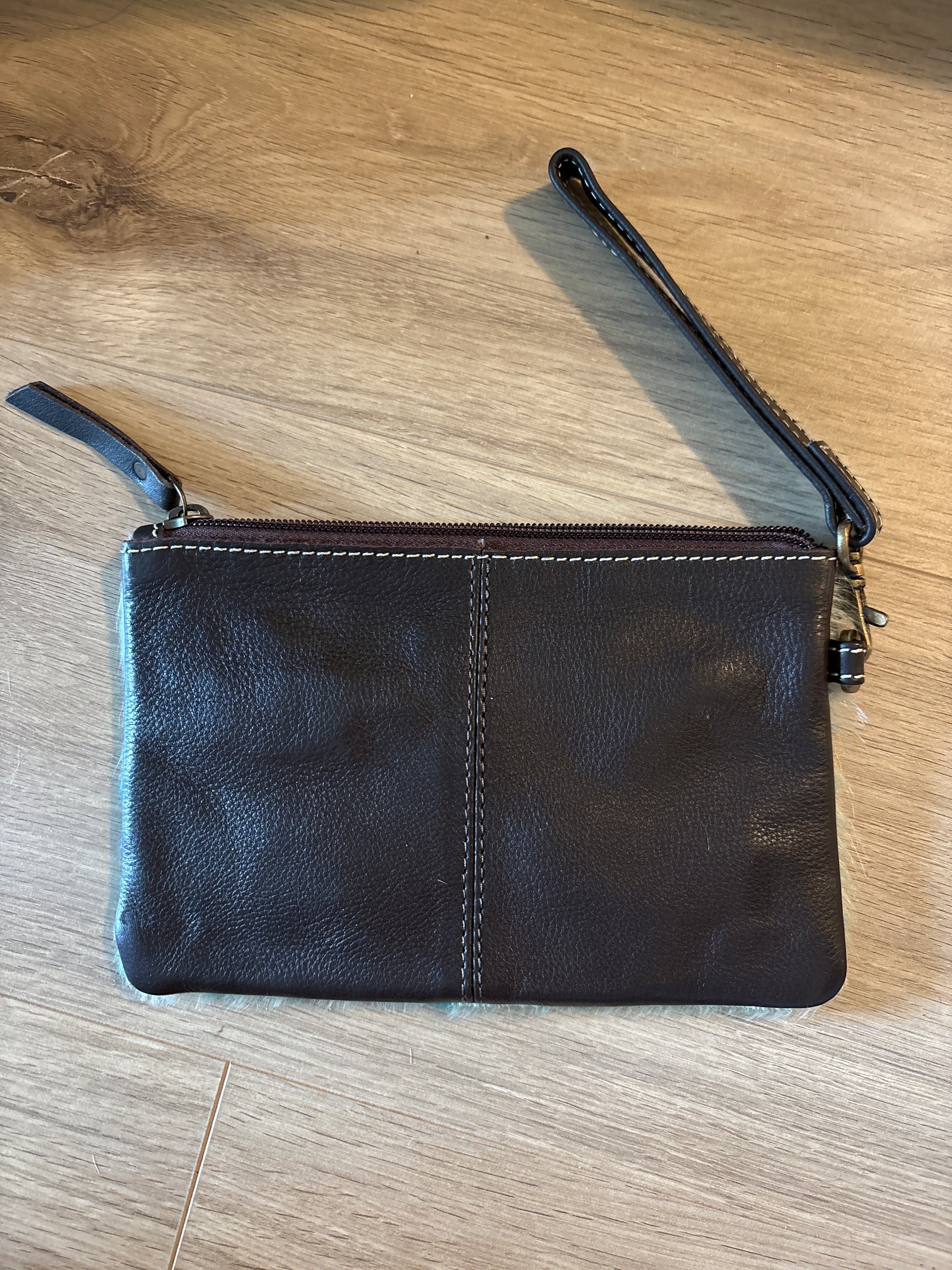 • wristlet can either be carried on its own or can be tossed inside larger bags.
