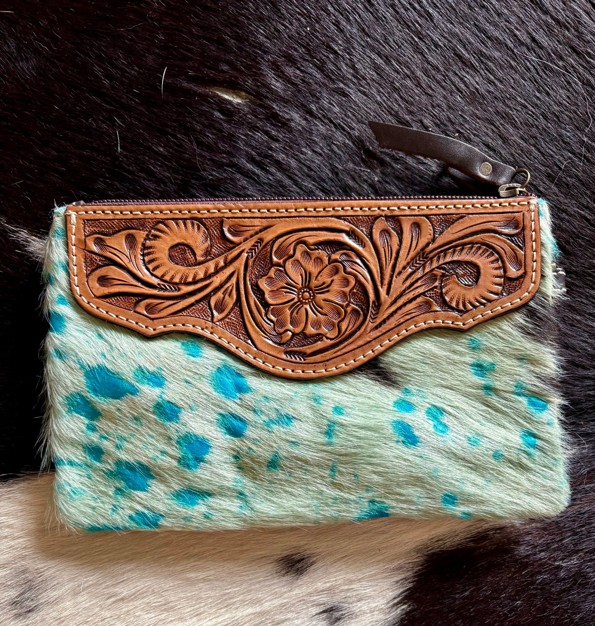 Hair on Cowhide Wristlet Clutch Purse Wallet Handbag Leather Lined Leather back
